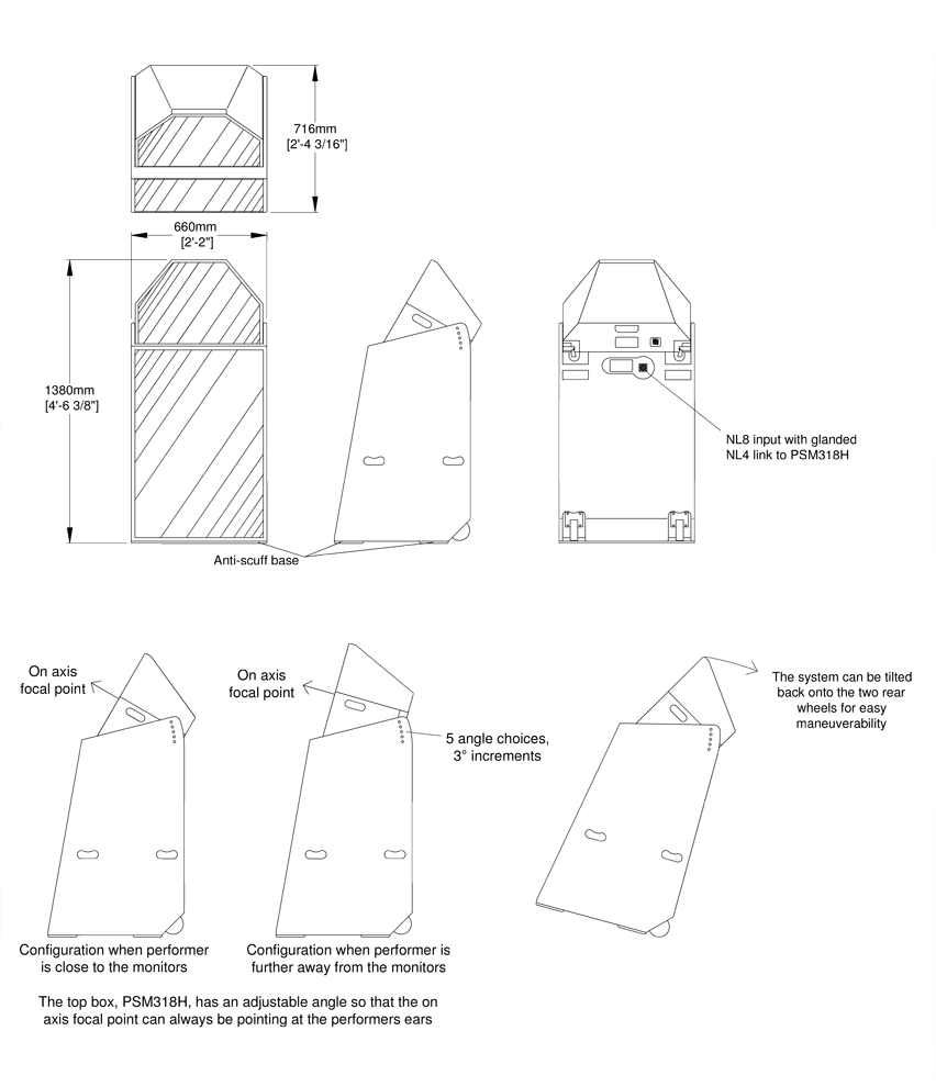 - Einfache Winkeleinstellung des PSM318H für verschiedene Bühnenstandorte und DJ-Höhen
