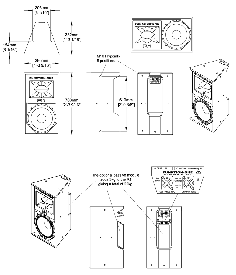 Die Resolution 1 ist ein 2-Wege-Lautsprecher, der aus 40 Jahren Pionierarbeit von Tony Andrews für Forschung und Entwicklung von Hochleistungs-Konustreibern für den mittleren Frequenzbereich entstanden ist. Die Verwendung des einzigartigen 5“-Treibers gemeinsam mit der von Funktion One bekannten Waveguide-Technologie ermöglicht es, sowohl mittlere als auch hohe Frequenzen mit außergewöhnlicher Kohärenz und Detailgenauigkeit zu reproduzieren. Des Weiteren bildet der 5“-Treiber am Übergabepunkt von 520 Hz einen nahtlosen Übergang zu dem 12“-Tieftontreiber. Dies steht im Gegensatz zu herkömmlichen 2-Wege-Systemen, bei denen Kompressionstreiber mit 12″ oder 15″ Tieftontreibern kombiniert werden, deren Frequenzbereich nach oben hin auf 1-2KHz ausgedehnt werden muss, um den Kompressionstreiber im unteren Frequenzbereich zu entlasten. Aufgrund der Genauigkeit, der akustischen Projektion und Detailgenauigkeit der Resolution 1 eignet sie sich ideal für Anwendungen mit hoher Sprachverständlichkeit wie z.B. in Theateranwendungen. Das Gehäuse hat eine rückwärtige Aussparung, in der das optionale passive Crossover-Modul PX1 installiert werden kann. Der Waveguide kann zur Verwendung in vertikalen oder horizontalen Anwendungen gedreht werden.